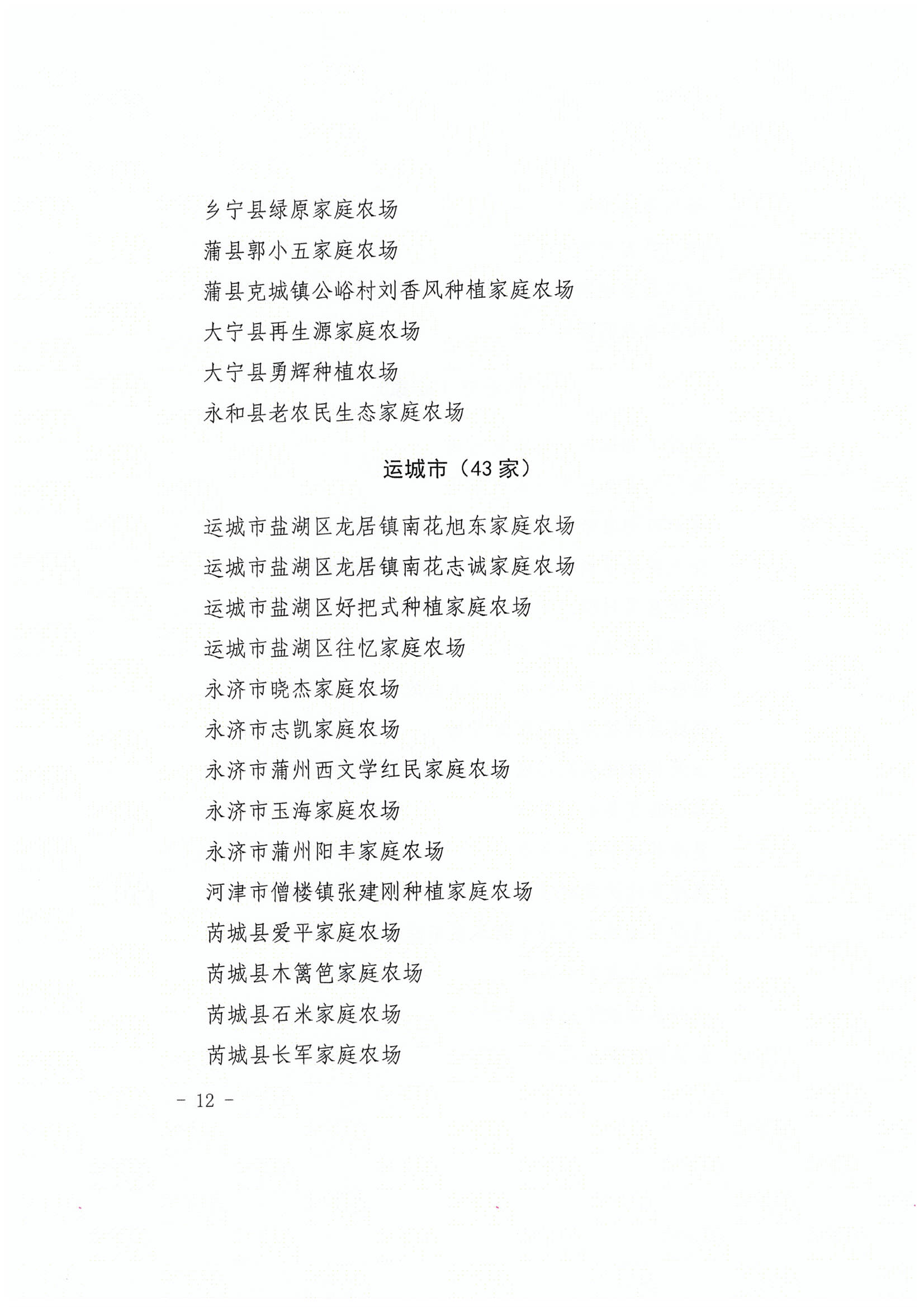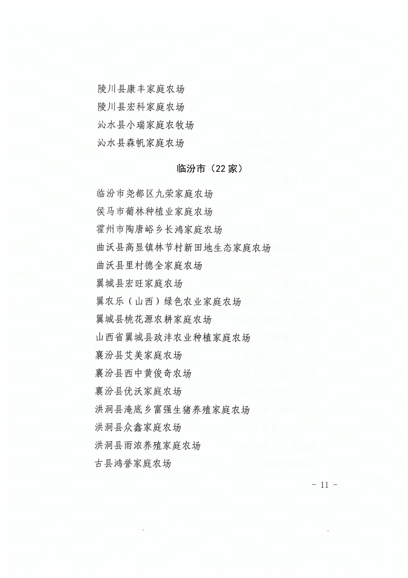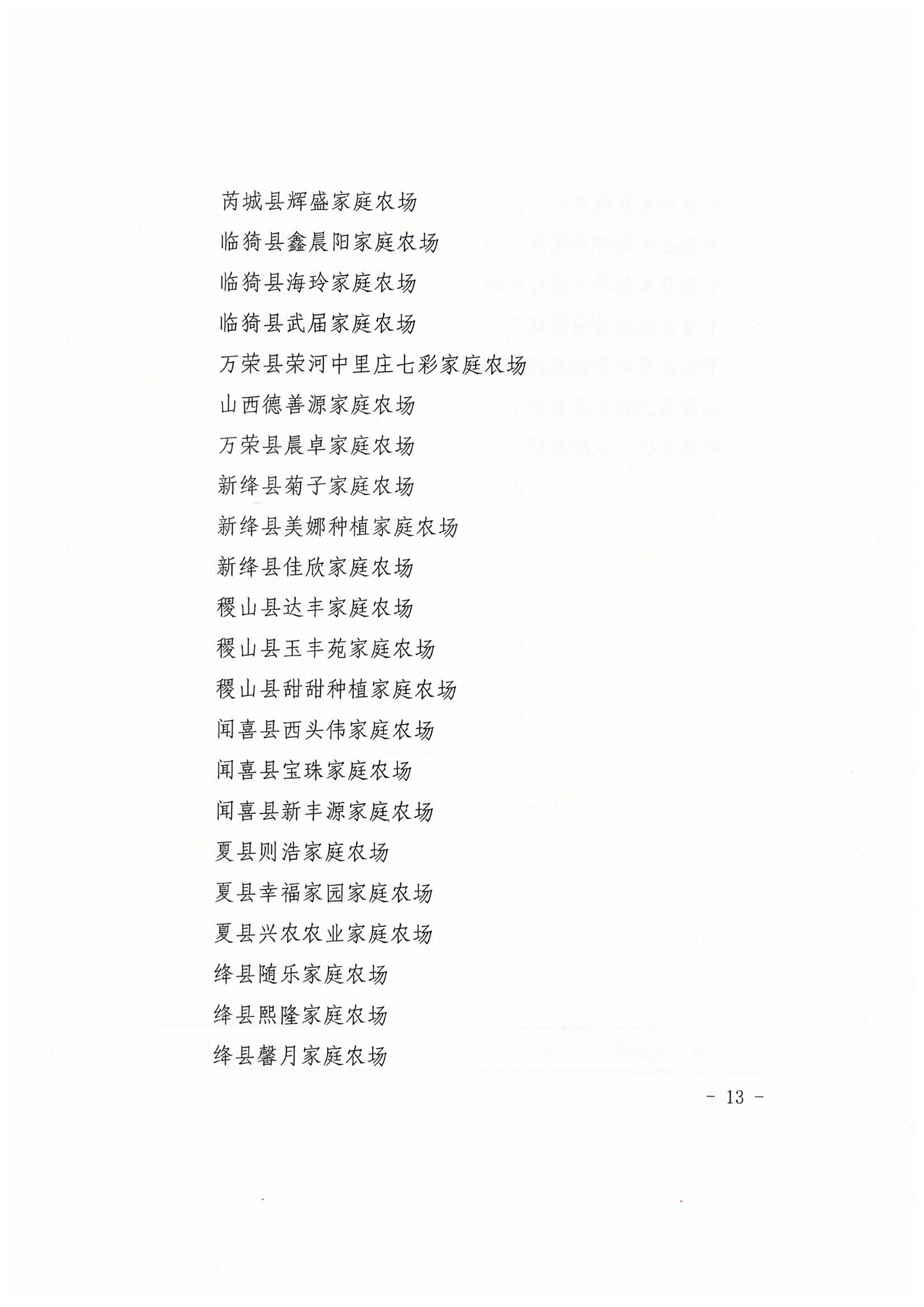 《山西省农业农村厅办公室 关于公布2022年省级示范家庭农场和家庭农场示范县名单的通知》(晋农办政改发〔2022〕229号)