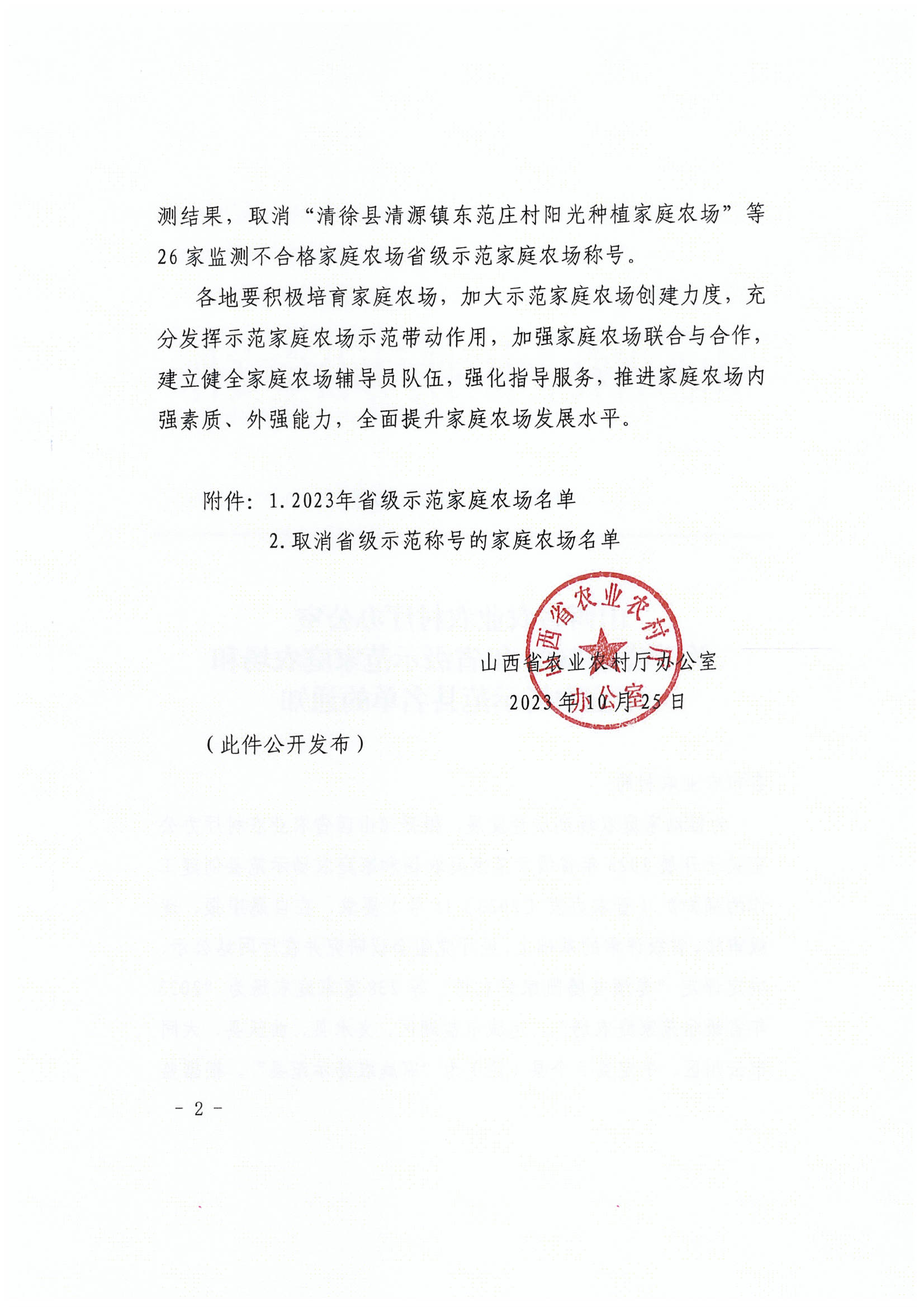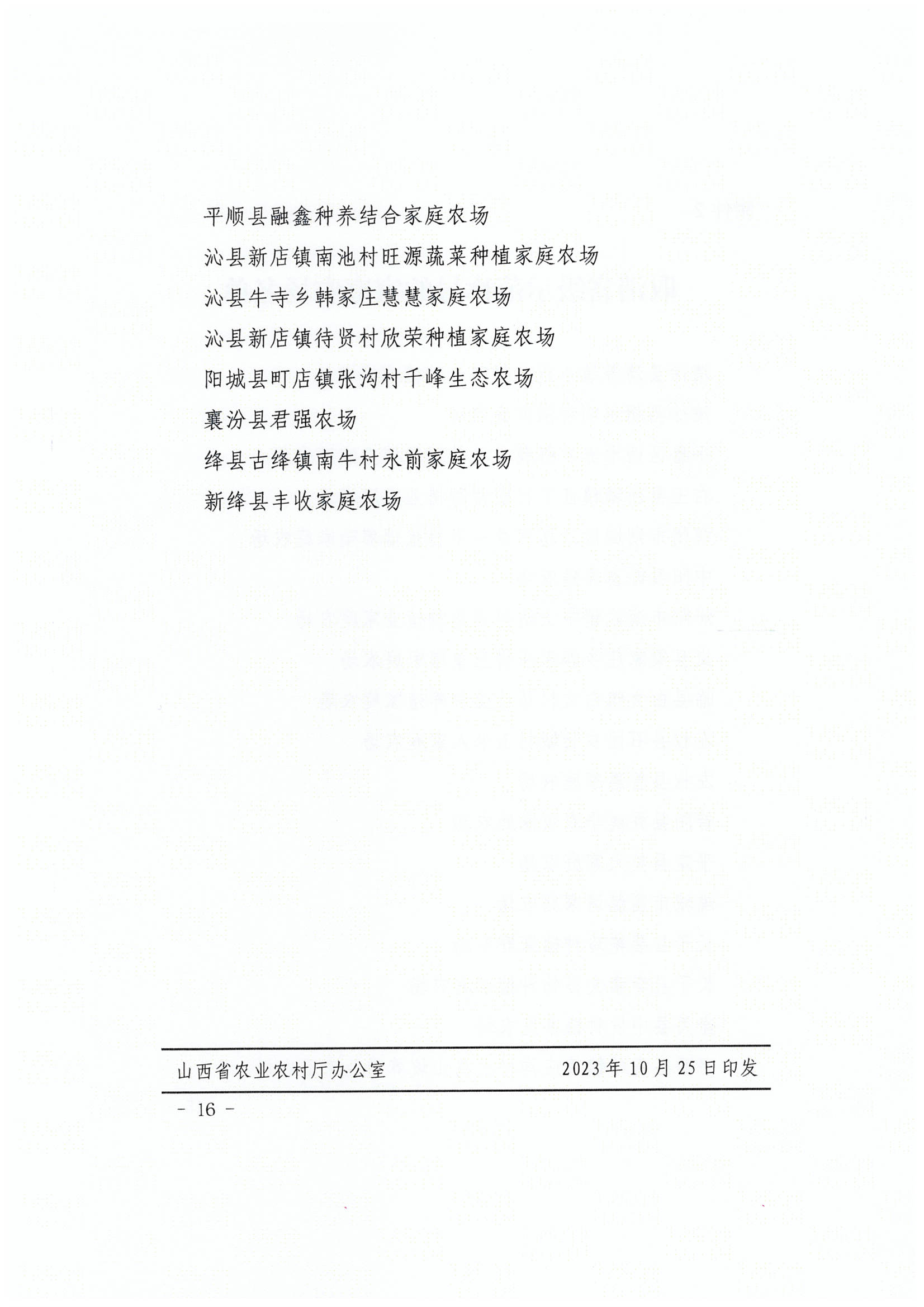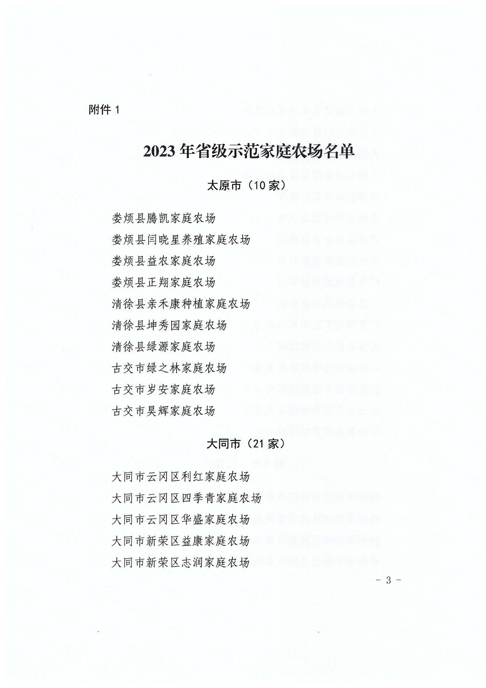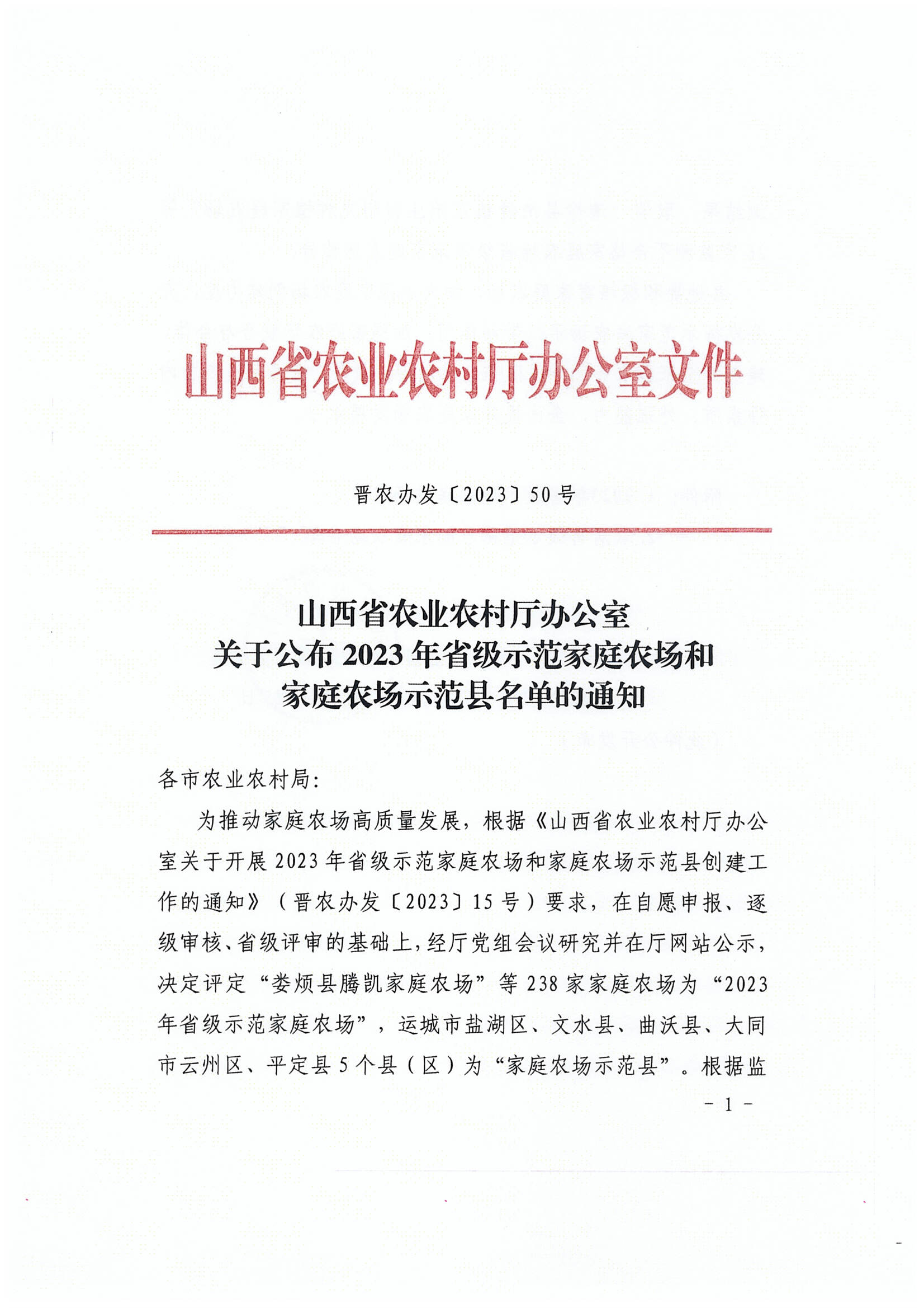 《山西省农业农村厅办公室关于公布2023年省级示范家庭农场和家庭农场示范县名单的通知》(晋农办发〔2023〕50号)