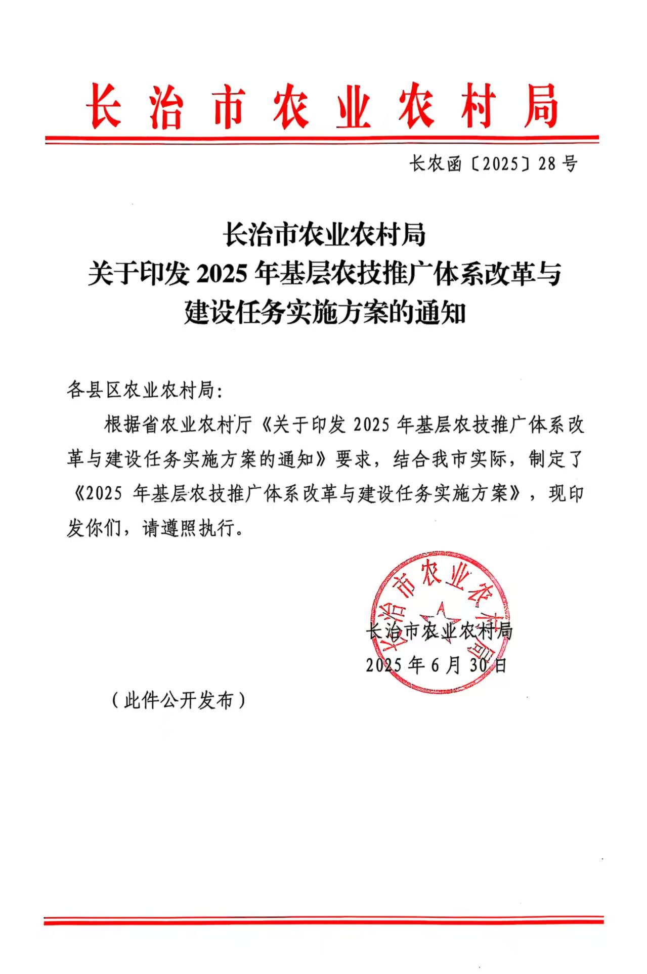 长治市农业农村局关于印发2025年基层农技推广体系改革与建设任务实施方案的通知
